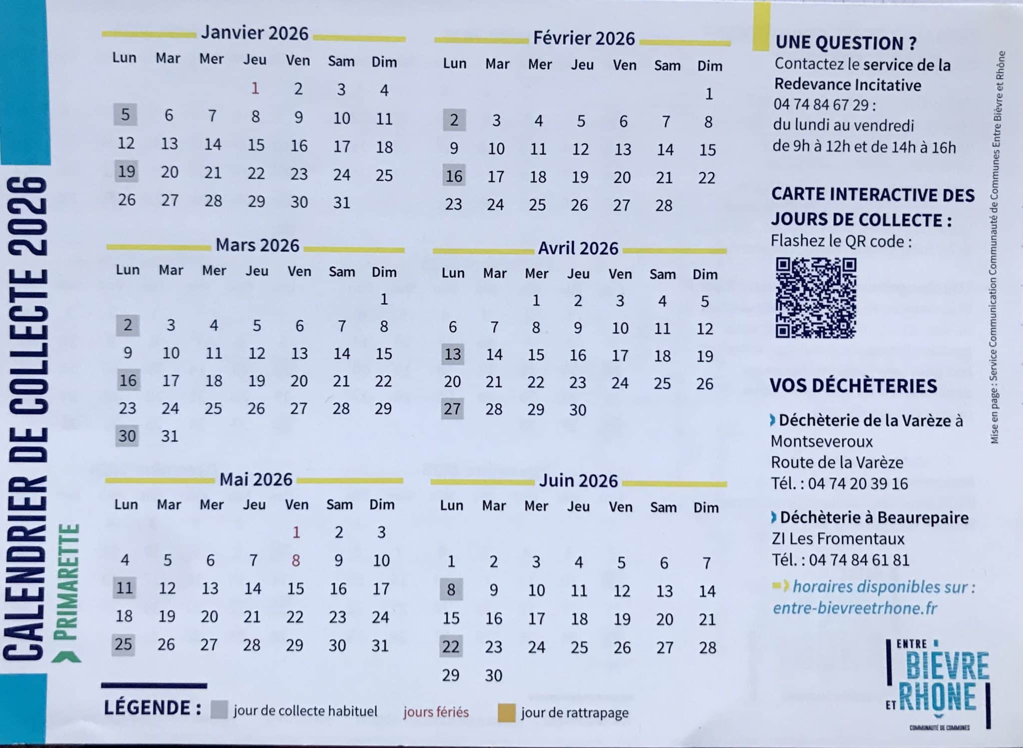 Pour tout renseignement, consultez le règlement intérieur des déchèteries de Entre Bièvre et Rhône ci-dessous :